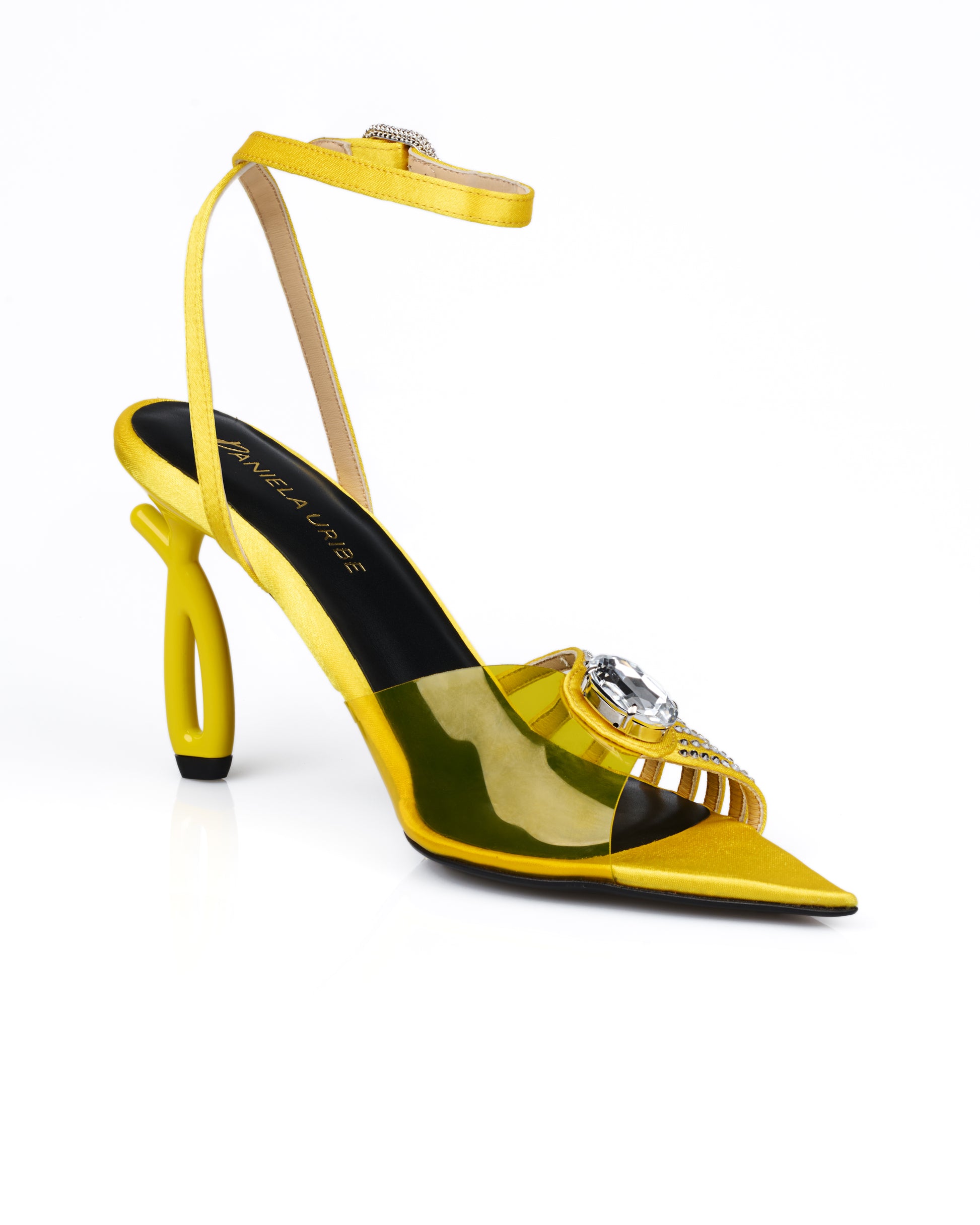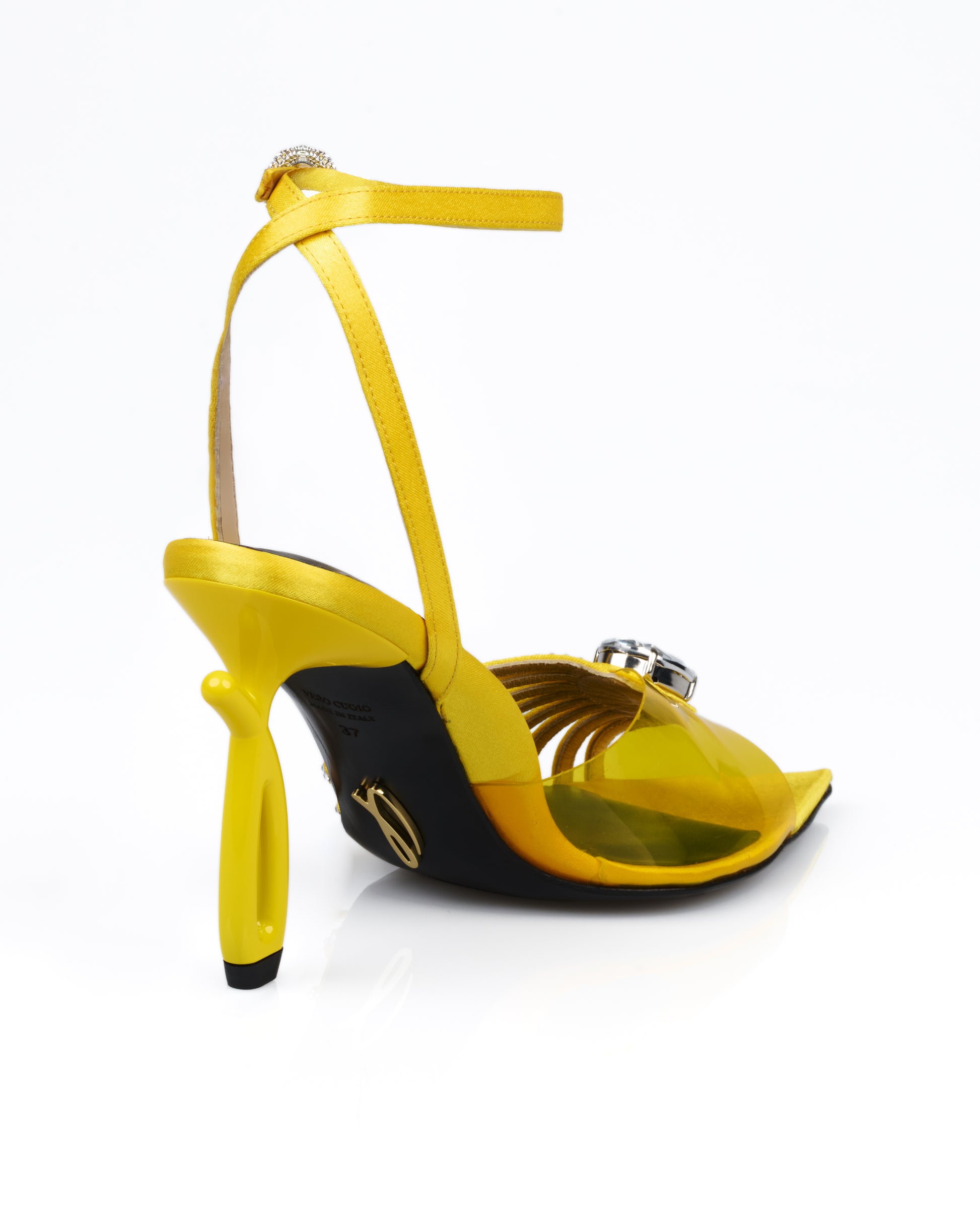 Dazzle with every step in our Bloom Sandals—designed in a stunning satin yellow hue and adorned with sparkling rhinestones. The perfect statement piece to elevate any look with elegance and brilliance.